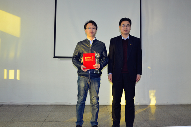 圖二 CEO王永紅為郭引文頒發(fā)“創(chuàng)新狂人”獎杯、證書和獎金