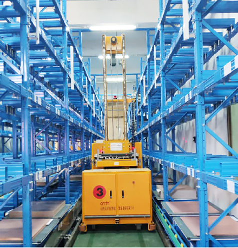 通過車體上配置的堆垛機(jī),與輸送線以及倉儲(chǔ)貨架對(duì)接應(yīng)用