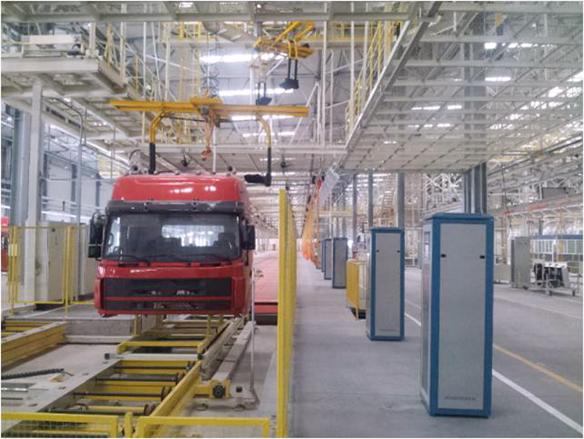 該滑撬輸送系統(tǒng)從涂裝車間轉(zhuǎn)掛工件,載碼后,自動行走進入總裝PBS庫區(qū),自動分類存儲到不同的存儲線路內(nèi)。按生產(chǎn)調(diào)度指令自動調(diào)取工件,通過內(nèi)飾線下料升降機,至車身內(nèi)飾線,空撬體返回涂裝上料區(qū)等待上件。存儲區(qū)設(shè)置一條可以雙向運行的通道,作為快速通道和倒車通道。