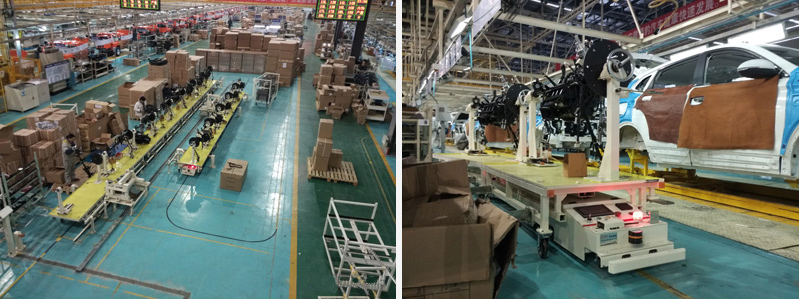 安徽獵豹汽車有限公司屬于長豐集團(tuán),主要生產(chǎn)SUV與皮卡類車型,該AGV項(xiàng)目用于總裝車間儀表線物流配送,AGV通過牽引臺車,將裝配好的儀表盤運(yùn)送至內(nèi)飾線安裝,AGV帶著空臺車返回儀表盤線,循環(huán)運(yùn)行,滿足生產(chǎn)線40JPH節(jié)拍。AGV采用磁道航導(dǎo)引系統(tǒng),并通過控制系統(tǒng)與其他管理系統(tǒng)即時(shí)通訊,可實(shí)現(xiàn)無人自動(dòng)化運(yùn)輸,是汽車行業(yè)等提升行業(yè)競爭力、減少人工成本、提高倉配效率的選擇。