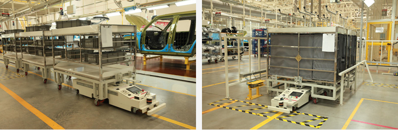 北汽(鎮(zhèn)江)汽車有限公司屬于北汽集團(tuán),主要生產(chǎn)中高端SUV及核心零部件,該AGV項(xiàng)目用于總裝車間內(nèi)飾線與車門線物料配送,配送方式采用SPS供給模式,并結(jié)合線邊自動(dòng)上下線系統(tǒng),將物料按正確的數(shù)量在準(zhǔn)確的時(shí)刻運(yùn)送到正確的地點(diǎn),實(shí)現(xiàn)無人化配送,滿足生產(chǎn)線40JPH節(jié)拍。AGV采用磁道航導(dǎo)引系統(tǒng),并通過控制系統(tǒng)與其他管理系統(tǒng)即時(shí)通訊,可實(shí)現(xiàn)無人自動(dòng)化運(yùn)輸,是汽車行業(yè)等提升行業(yè)競爭力、減少人工成本、提高倉配效率的選擇。