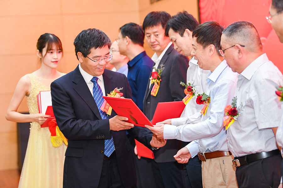 姚董事長(zhǎng)為中國(guó)工程院院士嚴(yán)新平先生頒發(fā)主任委員聘任證書